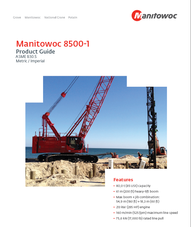 標題:馬尼托瓦克8500-1履帶起重機性能表