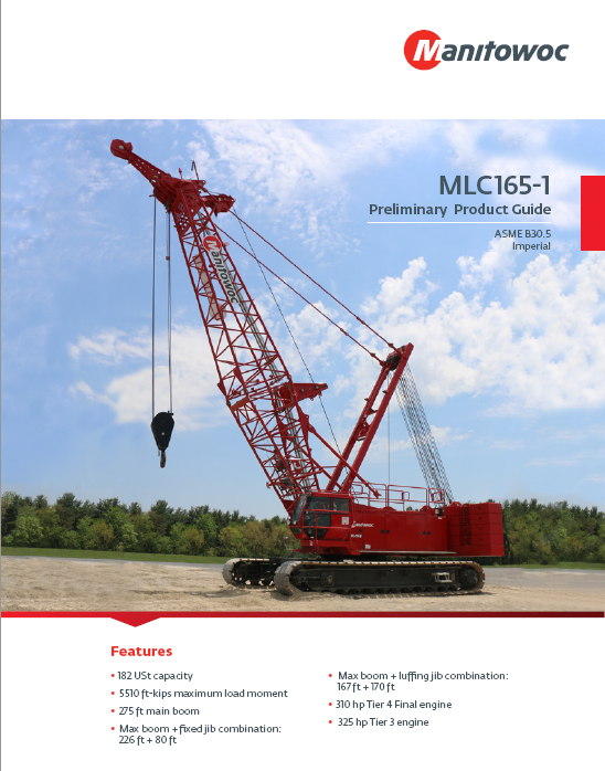 標題:馬尼托瓦克MLC165-1履帶起重機性能表