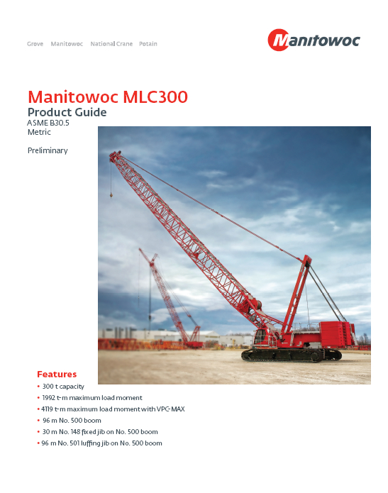 標題:馬尼托瓦克MLC300-M履帶起重機性能表